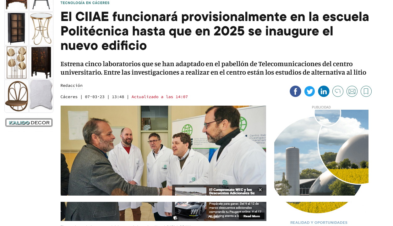 La Junta de Extremadura estrecha la colaboración con Portugal en su apuesta por la investigación en almacenamiento energético del CIIAE