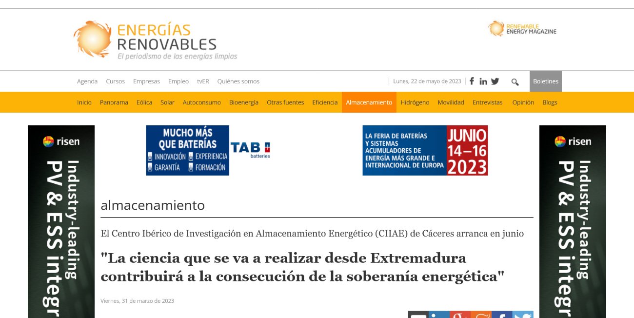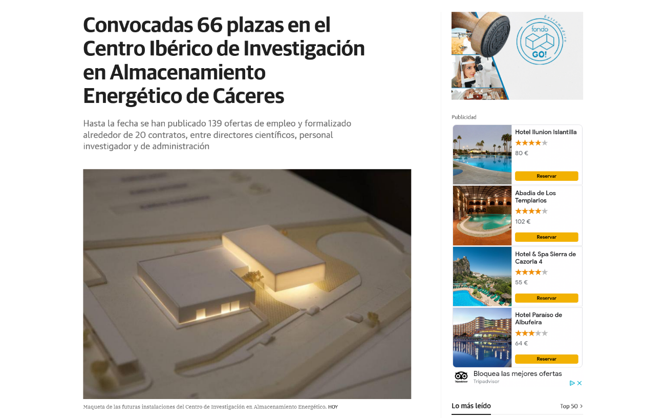 Convocadas 66 plazas en el Centro Ibérico de Investigación en Almacenamiento Energético de Cáceres