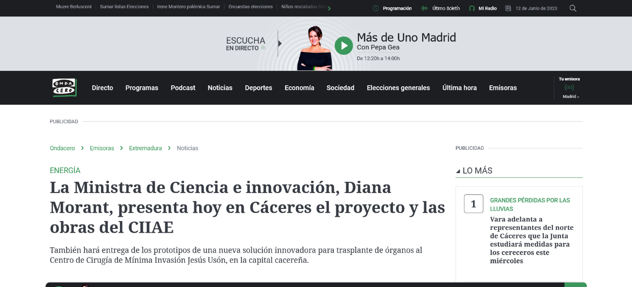 La Ministra de Ciencia e innovación, Diana Morant, presenta hoy en Cáceres el proyecto y las obras del CIIAE