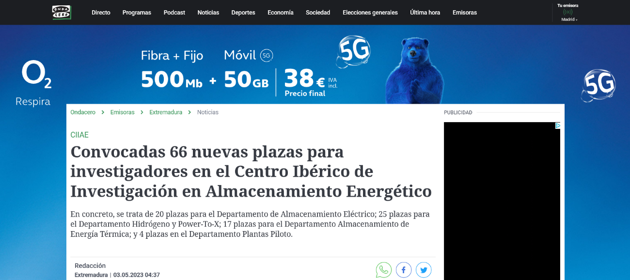 Convocadas 66 nuevas plazas para investigadores en el Centro Ibérico de Investigación en Almacenamiento Energético